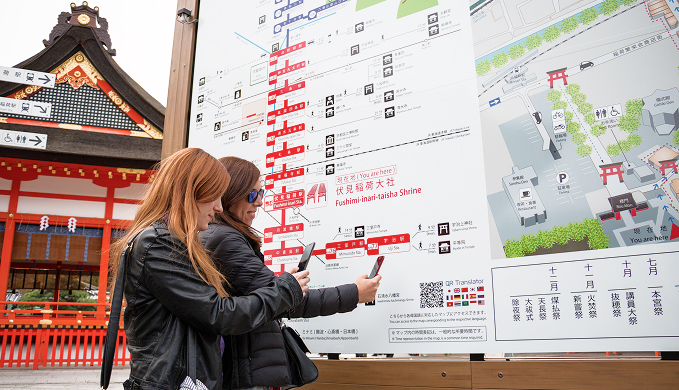 QR Translator issues a QR code that stores up to 15 translations. Simply display the QR code in a strategic location where your audience can easily access it.
