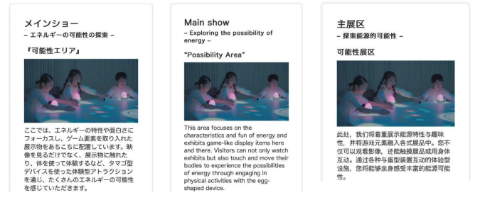 To address this, the pavilion has introduced a custom version of QR Translator supporting 37 languages. It enables users to access information in their device’s default language by scanning a single QR code. Notably, the translations are not AI-generated—they have been translated and supervised by native speakers affiliated with Osaka University’s GGC club, ensuring both accuracy and clarity. As a result, visitors who are not proficient in English can understand the Electric Power Pavilion’s exhibits and information in their native or most familiar language. With support for 37 languages, this solution is expected to cover over 99% of international visitors.